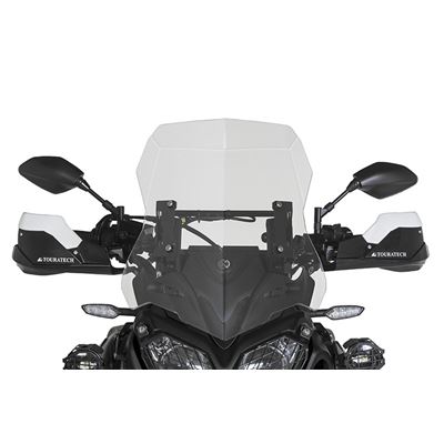 O ajuste de vidro versão Pro melhora significativamente a aerodinâmica a bordo da Yamaha Ténéré 700. Este produto é simples de instalar e permiter ajustar convenientemente a altura do vidro original para qualquer uma das sete posições apenas com uma mão. O elevador de vidro permite adaptarmos o vidro da melhor forma à necessidade de cada condutor e de cada situação. Viajar em longas tiradas ou estradas de montanha não é a mesma coisa e muito menos fazê-lo em aventura/offroad. Este ajuste, permite variar até 60mm o seu curso e continua desta forma a utilizar o vidro original da moto. O elevador de ajuste é aparafusado à fixação original da tela e suporta o pára-brisa. Feito de uma liga de alumínio anodizada preta de alta qualidade, este componente com sua aparência técnica harmoniza-se perfeitamente com a aparência de rally do cockpit Ténéré. Em sua posição mais baixa, o pára-brisa é 12 milímetros mais alto que a altura original. A altura pode ser variada para fornecer 60 milímetros adicionais para um total de sete posições. Enquanto a posição mais baixa é perfeita para passeios off-road, onde você precisa ver a roda dianteira, as posições mais altas permitem otimizar a proteção contra o vento. As opções de ajuste individuais também permitem que você adapte o comportamento do fluxo de ar à sua velocidade de deslocamento, à sua própria estatura e às características aerodinâmicas do capacete que você usa. A posição do pára-brisas é muito simples de ajustar. Sem ferramentas, em frações de segundo e com apenas uma mão. As molas especiais juntamente com um mecanismo preciso garantem uma posição estável em cada uma das sete posições. A amplitude do guiador/direção permanece inalterado e, usando o suporte original ou os suportes Touratech, os dispositivos de navegação podem ser acoplados sem restrições. - Operação simples com apenas em uma mão - faixa de ajuste de 60 milímetros - Instalação simples