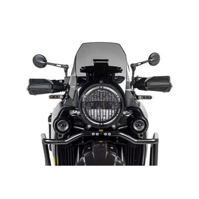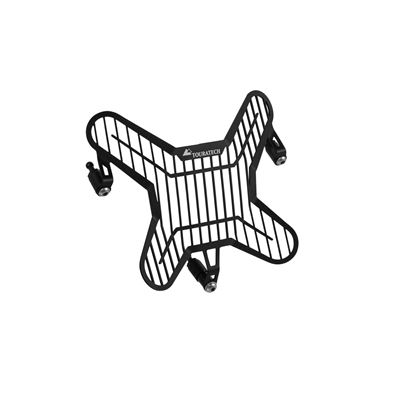 A protecção de ótica Touratech previne de forma eficaz que as pedras de maiores dimensões alcancem a óptica e a danifiquem.
